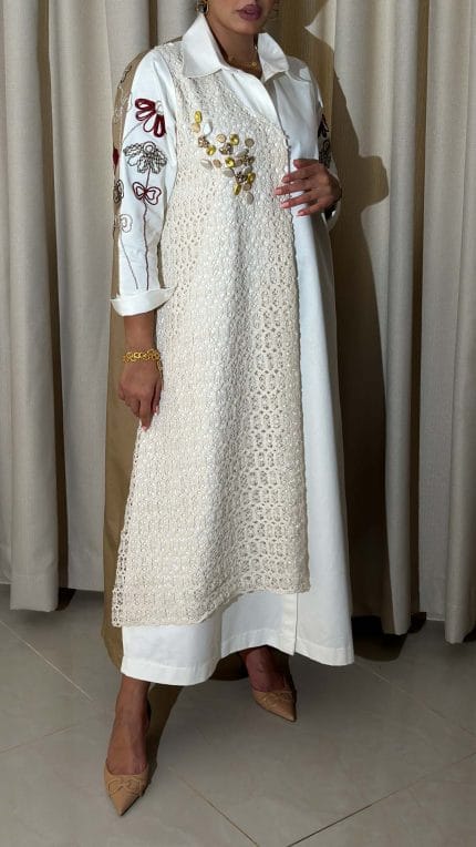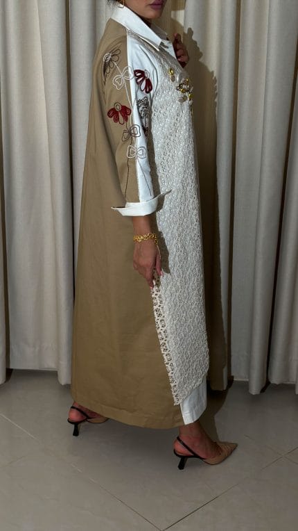 قطعه بقصه قميص طويل مزيج بين المخمل والقطن مع شك ليزر وديزاين بالظهر